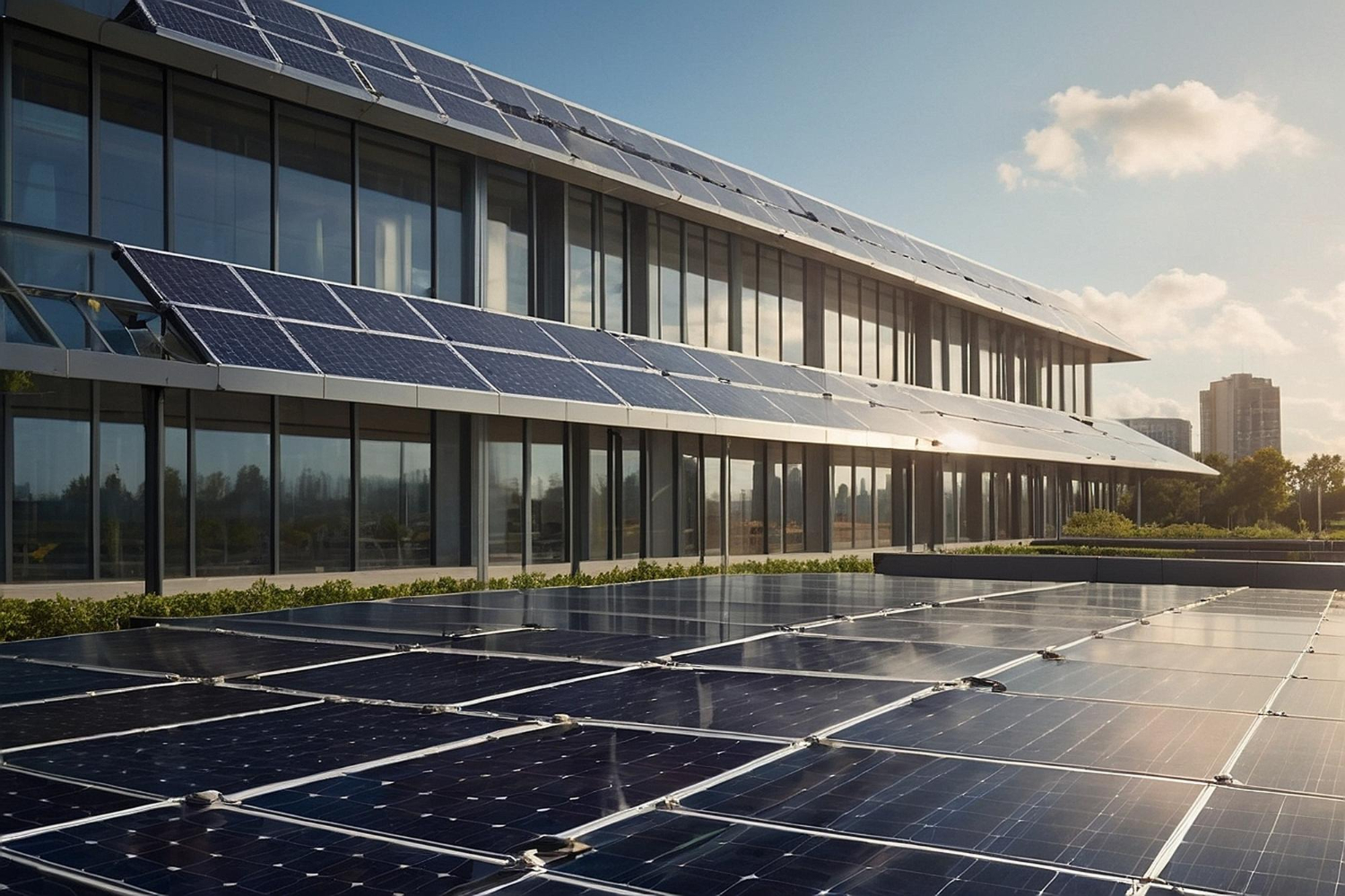 - Instalace fotovoltaických systémů pro výrobu elektřiny ze sluneční energie.